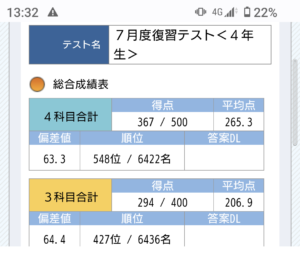 小4長男のサピックス7月度復習テストの結果が出ました。