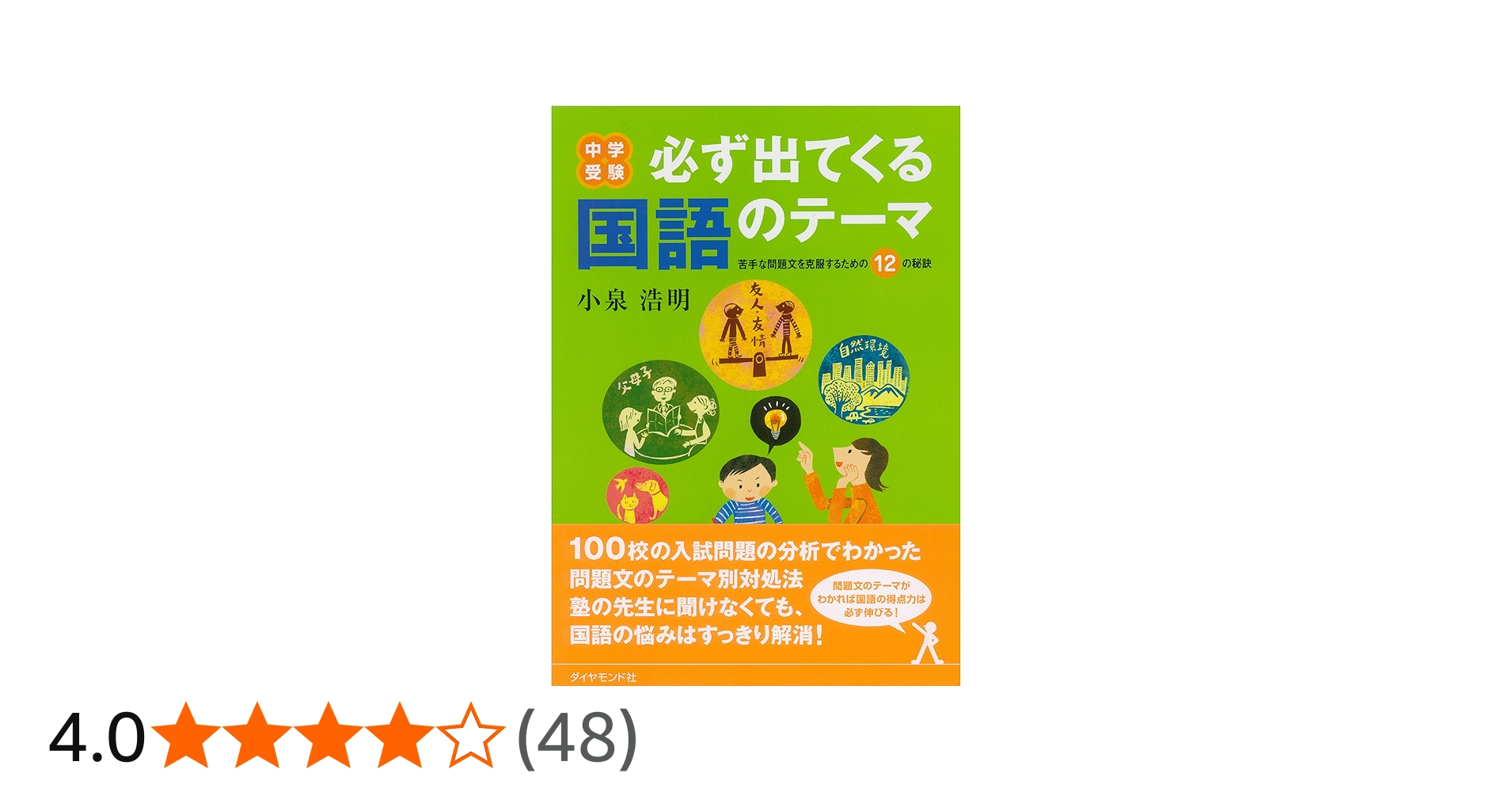 中学受験で出てくる国語の問題文には、大学入試顔負けのものも珍しくはありません。かといって、小学生はそんなにさまざまな文を読みなれているわけでもありません。このギャップを埋めるには、頻出する問題文の内容=テーマごとに、的確な対処法を身につけていくのが一番確実な方法です。出る順に並べられた12のテーマについて、塾での実体験に基づいて、小泉先生がお母さんにわかりやすくその教え方を解説します。