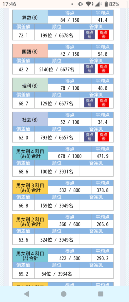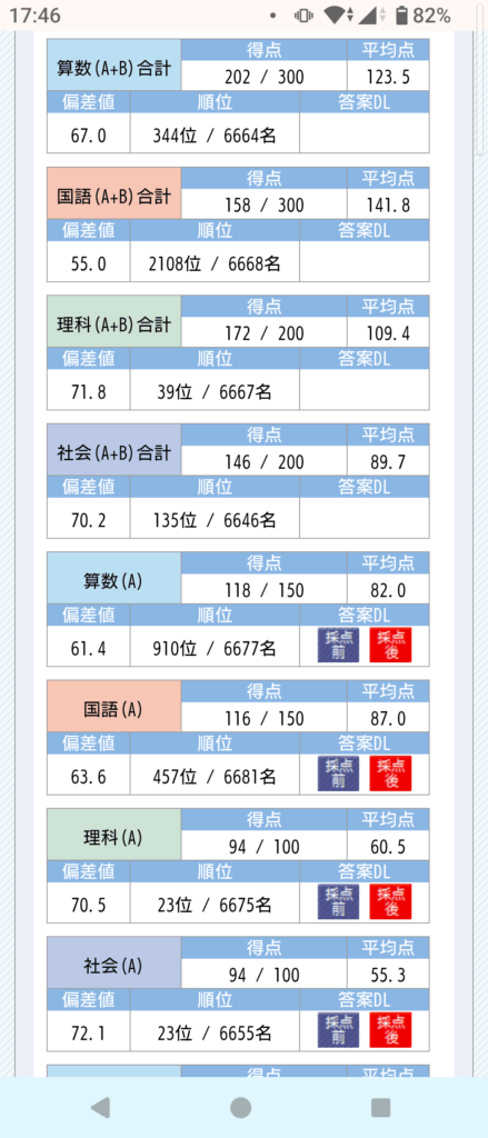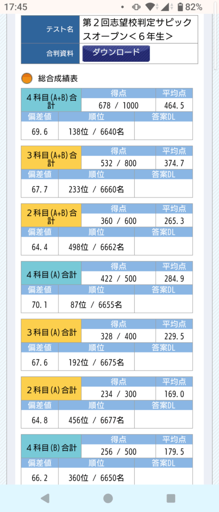 小6第2回サピックスオープン結果 SAPIX 2025.06.14 小6長男の第2回サピックスオープンの結果が発表されました。思いのほかいい!最近、最低記録を更新中だったので嬉しいです。微妙に本人の自己採点とずれているのは何故なんだろうかは気になる…。 国語Bが偏差値42.2という悲報ですが小5のとときなんて0点でしたしね…ここを夏休み、なんとかできるかが勝負ですね。もしくは国語B要素が低い学校を選ぶか(←たぶんこちら)。過去問解くか…私が。 まぁ、とりあえず、6月マンスリー行ってみましょう(今日!)。 研究しがいがある素晴らしいサイトたちへGO