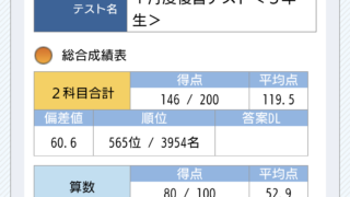 小3長男のSAPIX1月度復習テストの結果がアップされました。算数80点は相対的によかったんですね。結構点が取れていませんでしたが、問題が難しかったようです。国語66点は偏差値50を切りました。ちょっと国語はまだ対処法が見当たりません…。と、ここで自分の過去記事を読み返し、復習時に長男と「国語の点数が悪かったらもっとSAPIXの復習をちゃんとやる」と合意したと書いてあることを発見。全く覚えていませんが、そういうことらしいです。長男とちょっと話してみようと思います。長男は覚えているのかしら?